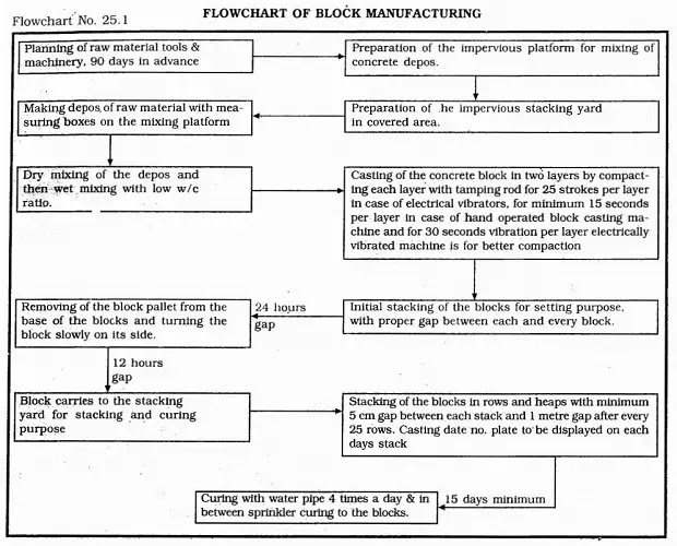 1. The following procedure should be followed for the manufacturing blocks work procedure.