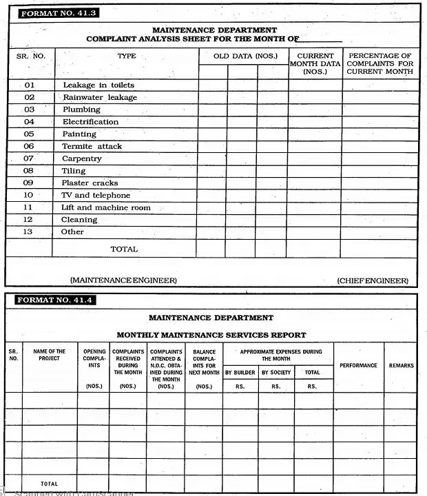 - The maintenance supervisor should issue a complaint No. for each and every complaint.