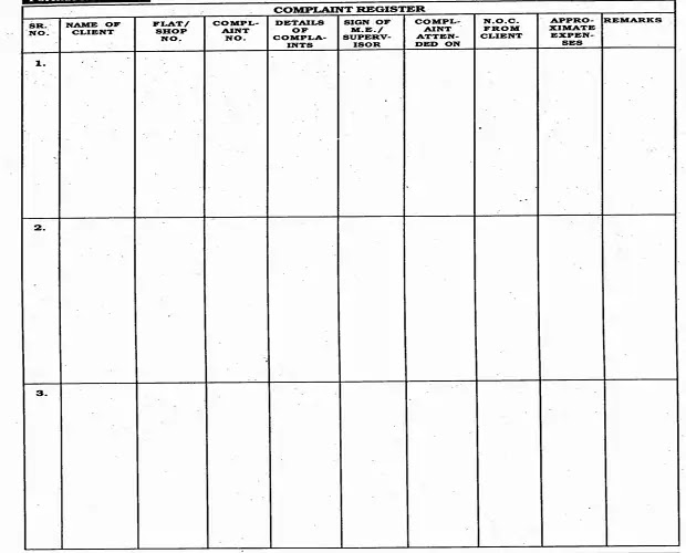 - Complaints should be sorted out within two days. In case of delay due to whatever reason, the maintenance supervisor should inform the client accordingly.
