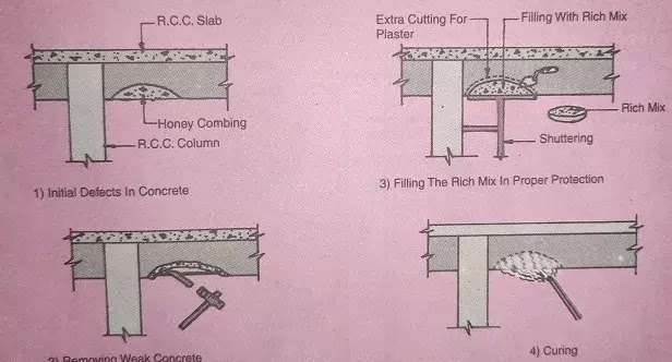 - Re-concrete with a rich mix. For minor voids, 1:4 or 1:3 cement-sand-mortar should be filled In the voids.