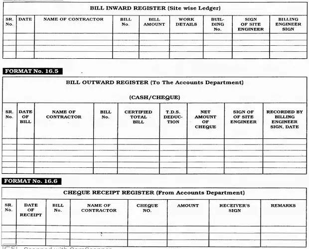 - To see that every bill is entered in the bill inward registers by the site in-charge.